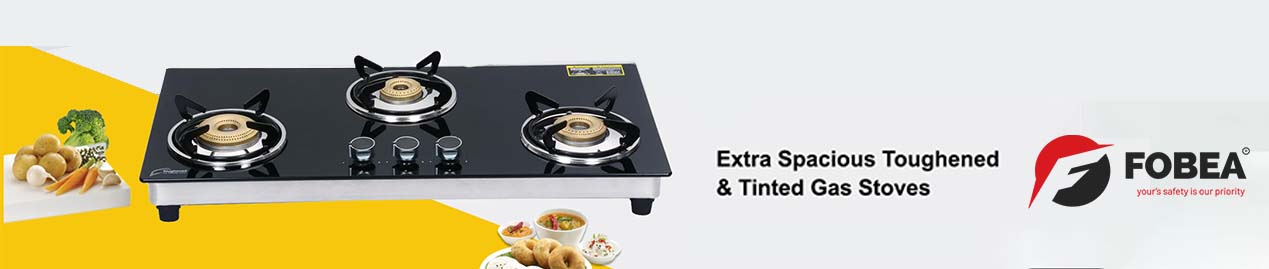 Fobea 3 Burner Manual Glass Gas Stove, Black (ISI Certified)